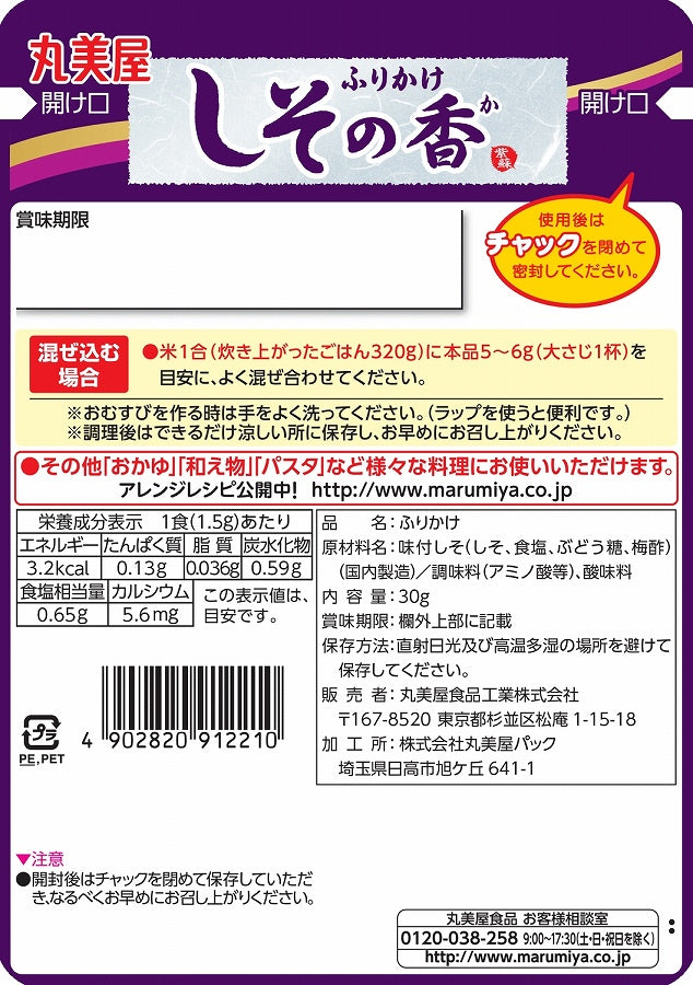 A rice seasoning featuring the refreshing aroma and flavour of shiso (perilla leaf).
